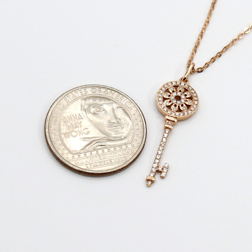 18K Rose Gold and Diamond Skeleton Key Pendant with 18 inch Chain