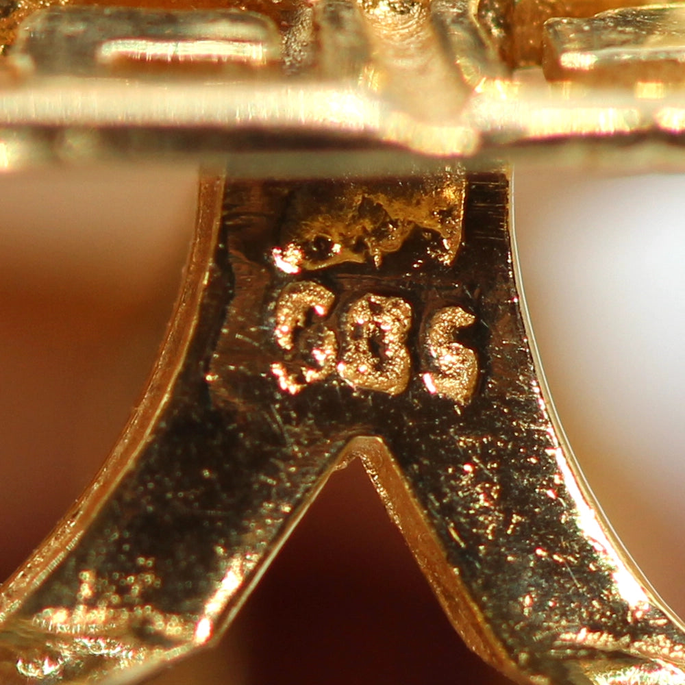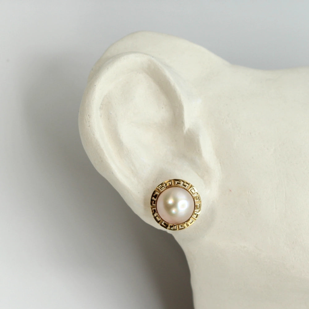 Vintage 14K Yellow Gold Mabe Pearl and Greek Key Earrings