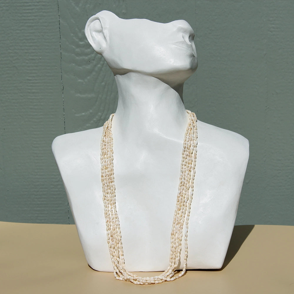 Each of the five strands is strung in the Mauna Loa style, where each shell is nestled seamlessly within the next.
