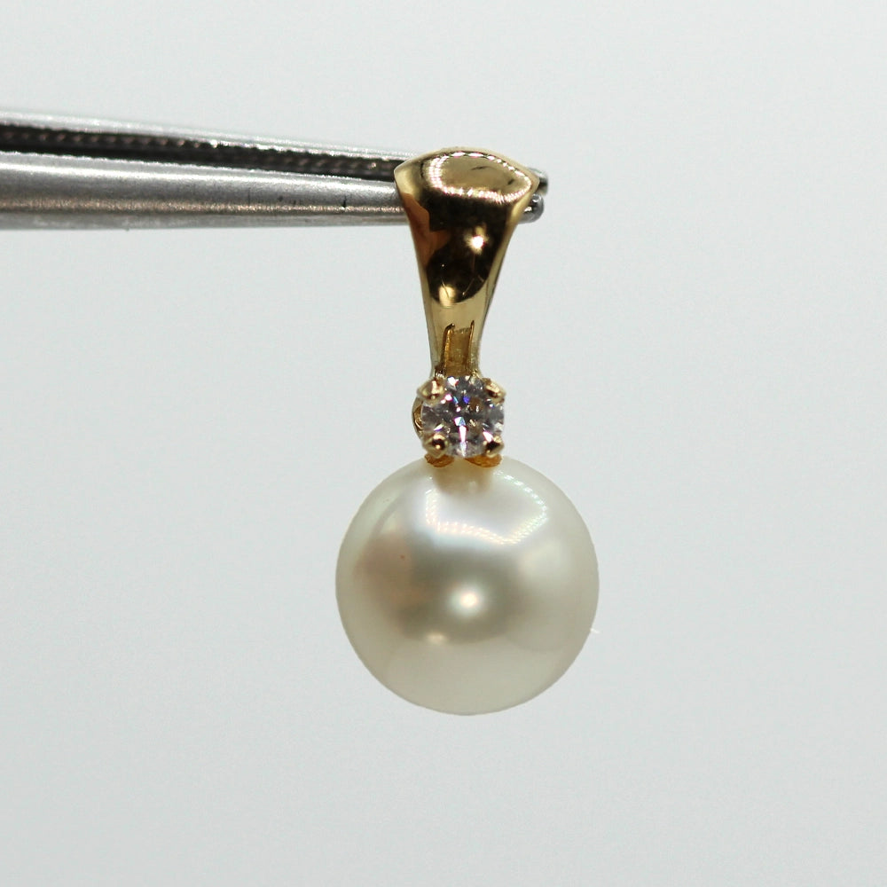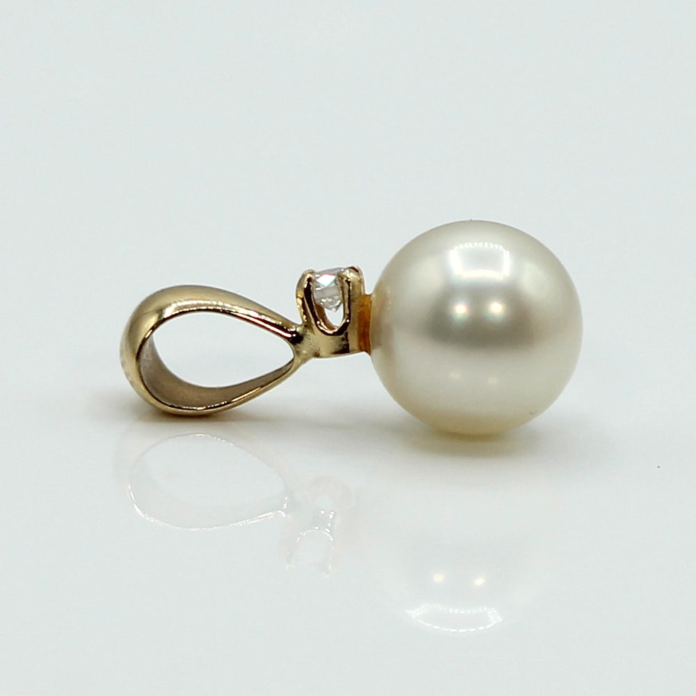 14K Yellow Gold Cultured Pearl and Diamond Pendant