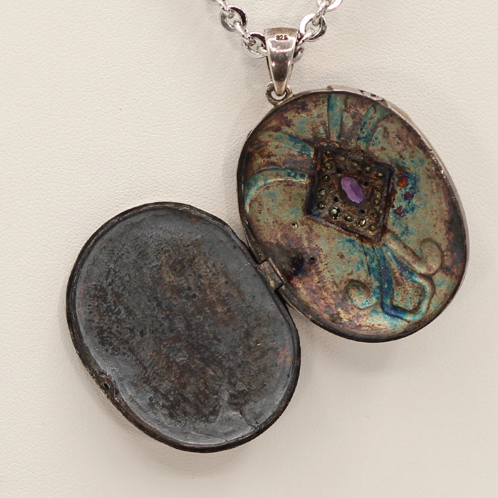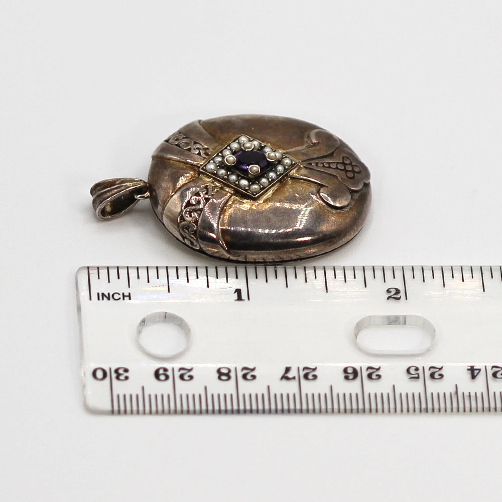 Sterling Silver Antonio Canova ‘Three Graces Dancing’ Locket with Amethyst and Pearls