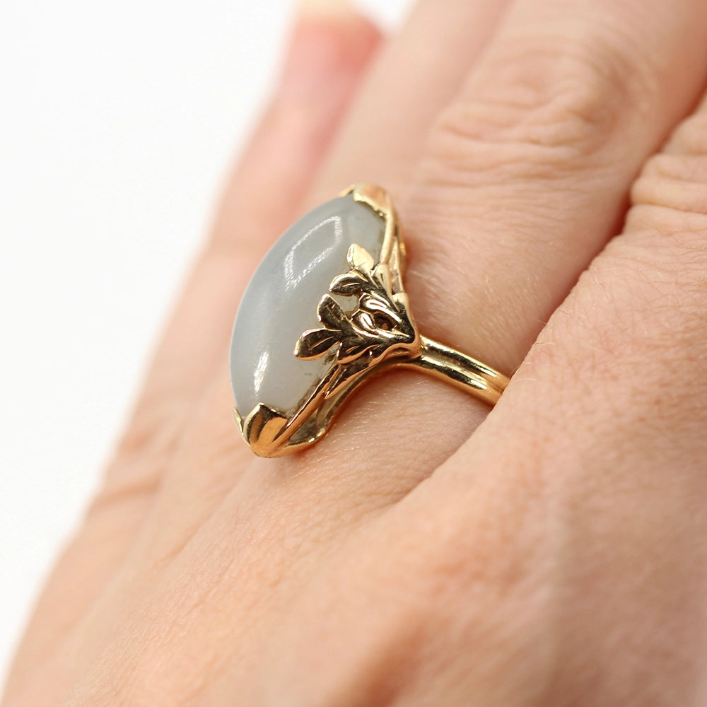 Vintage Ming’s Hawaii Pale Green Jade and 14K Yellow Gold Ring SIZE 6